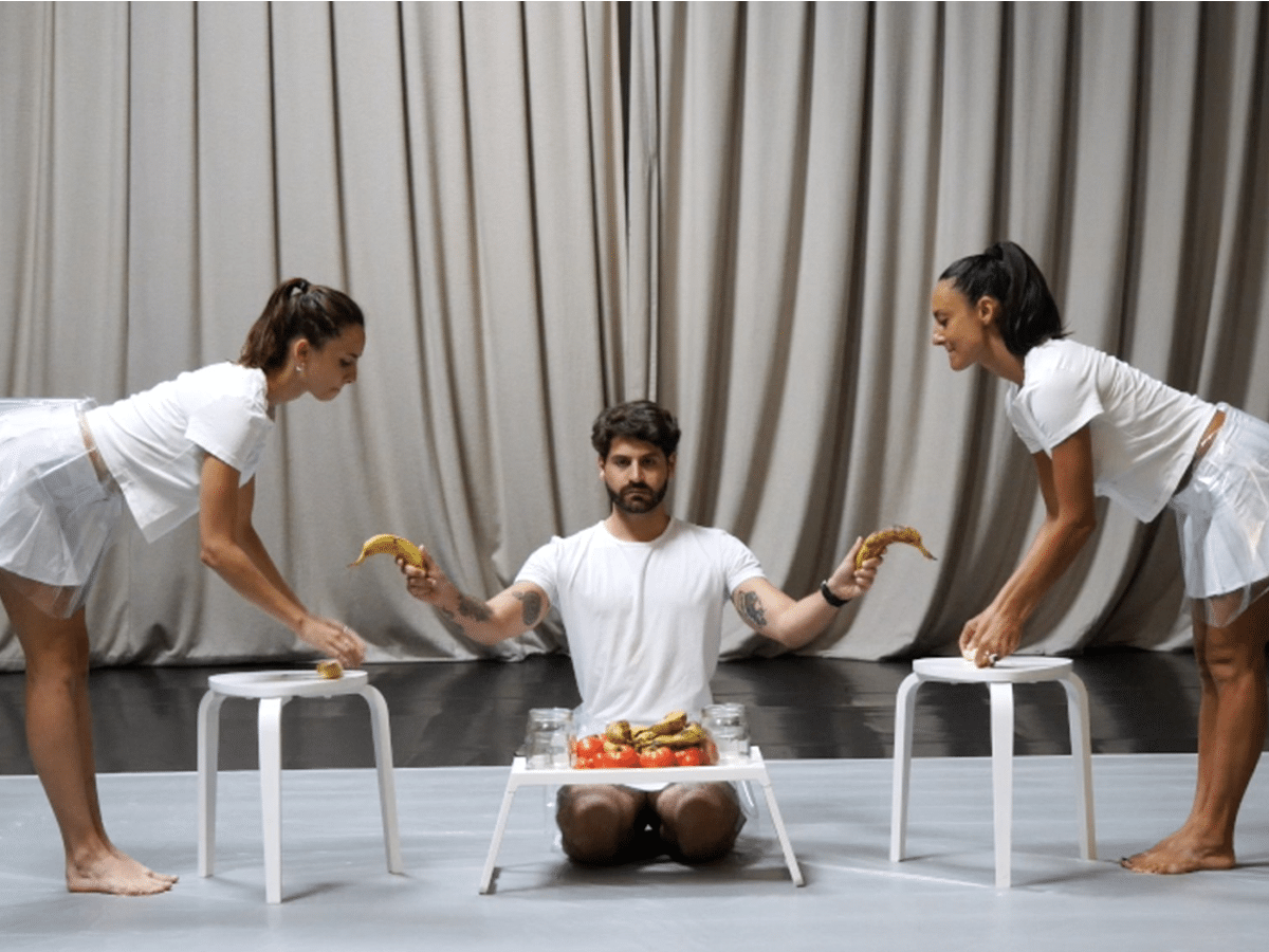 Natura Morta est une performance qui cherche à détourner les parties du corps de la femme sexualisées par la société. Nommant leur propre oppression, les deux artistes questionnent la représentation des femmes et l’évolution de la construction des modes esthétiques du corps féminin. Des corps pris de frénésie dans leurs propres mécaniques physiques se transforment au fur et à mesure en un mouvement robotique pour donner à voir l’image de la société industrielle de surproduction.